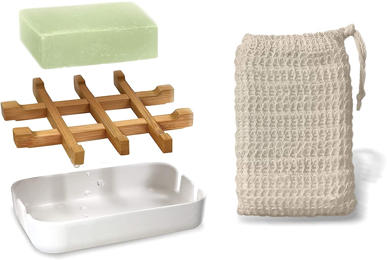 Soap Dish with Bag Durable Anti Mould Natural Wooden Bamboo Soap Dish Storage Hold Soap Dishes for Bar